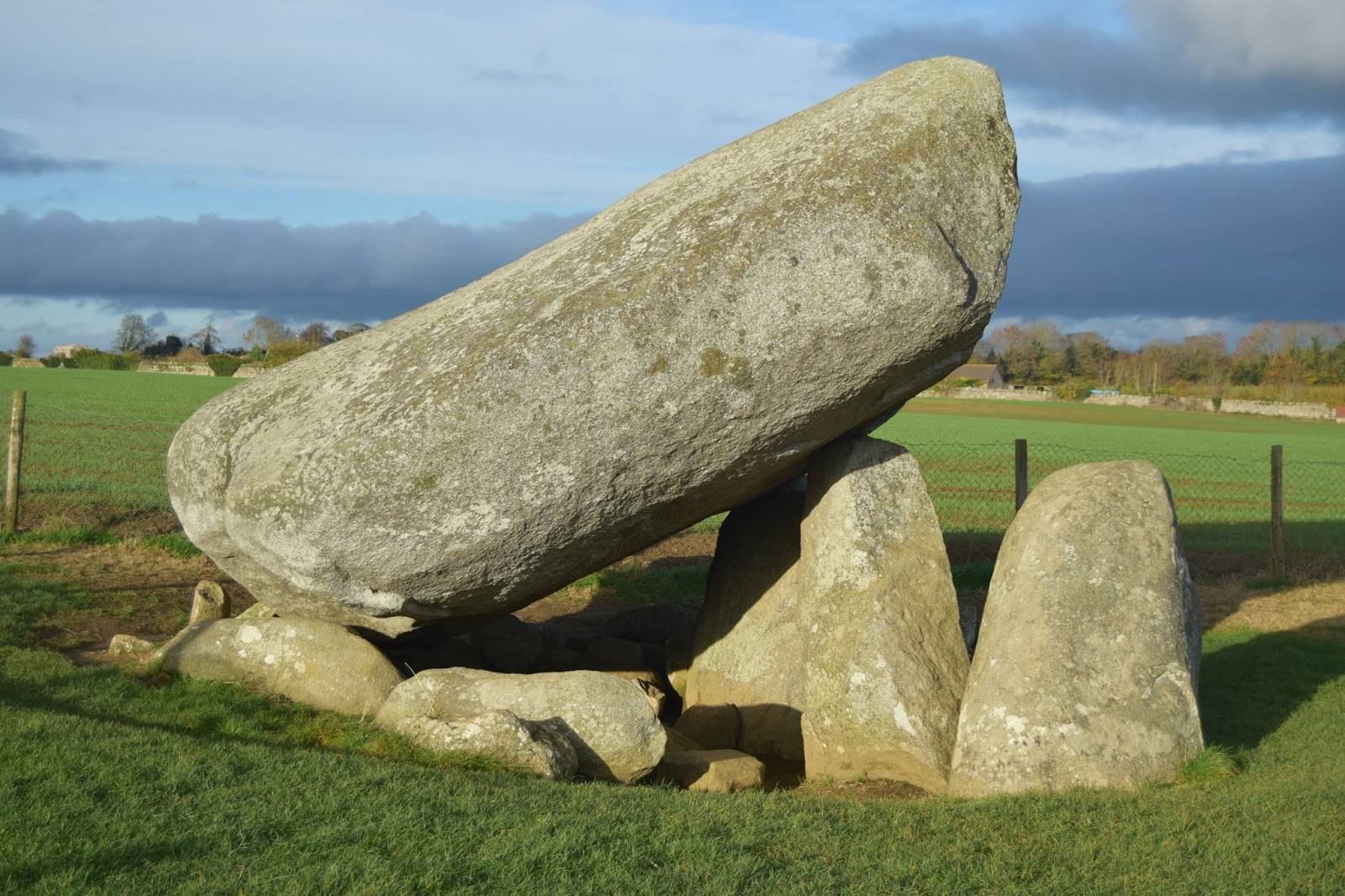 | Brownshill Dolmen is presented with respect, and protected by a fence. Picture © Lar Dooley. |