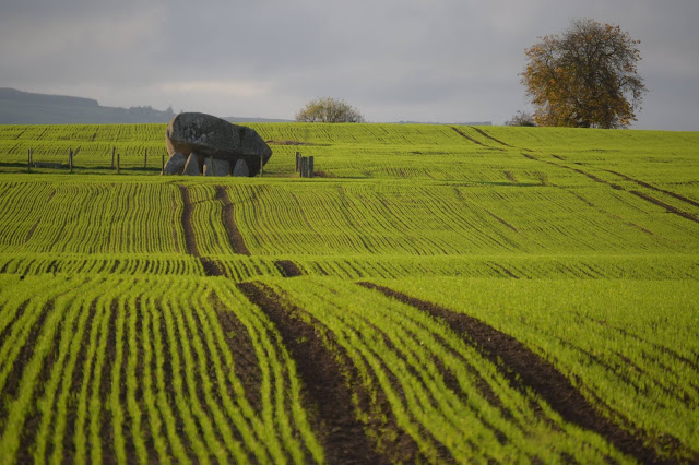 Brownshill (aka Kernanstown) Dolmen, Carlow, Ireland. A relic from our Neolithic past. I love the irony of the winter wheat just peeking above the ground, a harking back to the singular reason that Neolithic man is so close to our hearts. The first forests cleared, the first ground broken, the first crops grown and harvested.