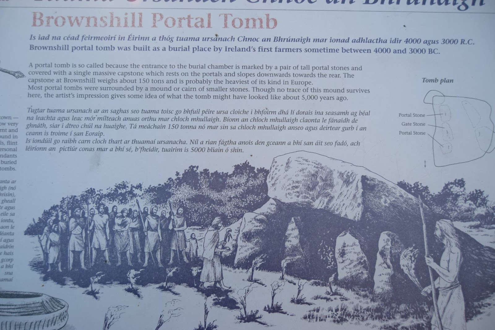 | Information about the Brownshill portal tomb from the sign at the site. Picture © Lar Dooley. |