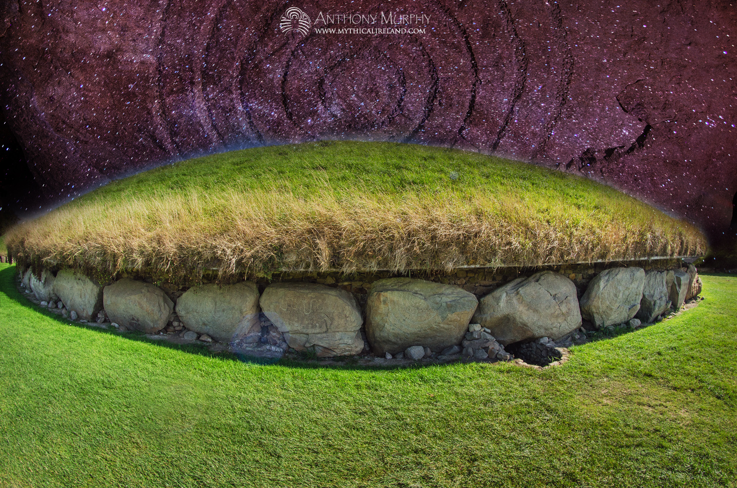In the tale Altram Tighe Dá Mheadar (The Fosterage of the House of Two Vessels), Manannán advises Oengus on how to take Newgrange from Elcmar: "Command him not to come (again) to the house from which he departs until ogam and achu are mingled together, until heaven and earth are mingled together, and until the sun and moon are mingled together." The mingling of heaven and earth could imply the mating of sky with the earth-mound Newgrange during winter solstice, while the latter reference to sun and moon being mingled might refer to an eclipse, something that I think is implied in the story about Dowth, in which the magic spell on the sun is broken when Bresal commits incest with his sister and a sudden darkness comes upon the land. (For further discussion of this theory, see Island of the Setting Sun, chapter 6.) I have discussed at length on the Mythical Ireland website and in my books the idea that the mound builders were competent astronomers, whose knowledge of the complex movements of the moon (and by extension the predictable patterns of eclipses) were recorded in stone, and inherent in the design of the monuments.