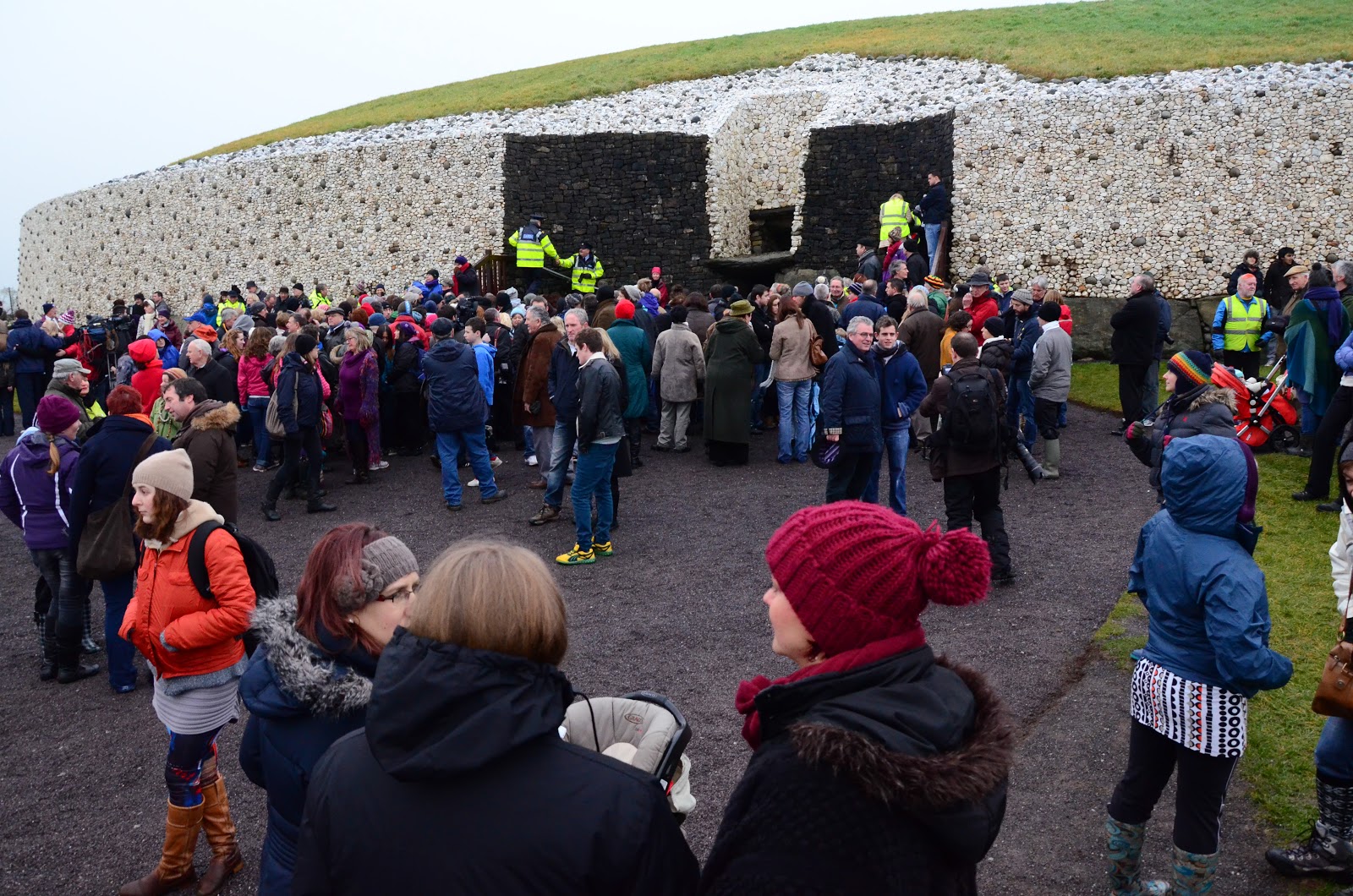 | The huge crowds at Newgrange enjoyed the morning despite the sun not shining. |