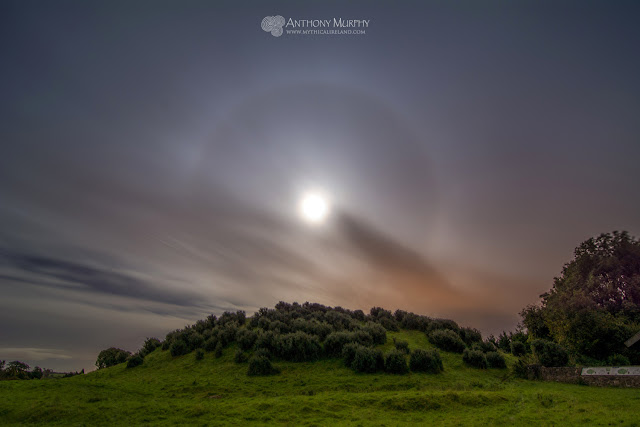 | A halo around the moon over the Boyne Valley, viewed from Newgrange. |