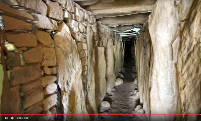 In the video below, which was part of an RTE news report, Philip Bromwell goes inside Knowth's eastern chamber and gives us a rare glimpse of what it's like. Take special note of the size of the ceremonial basin which is located in the right-hand recess of the chamber.