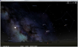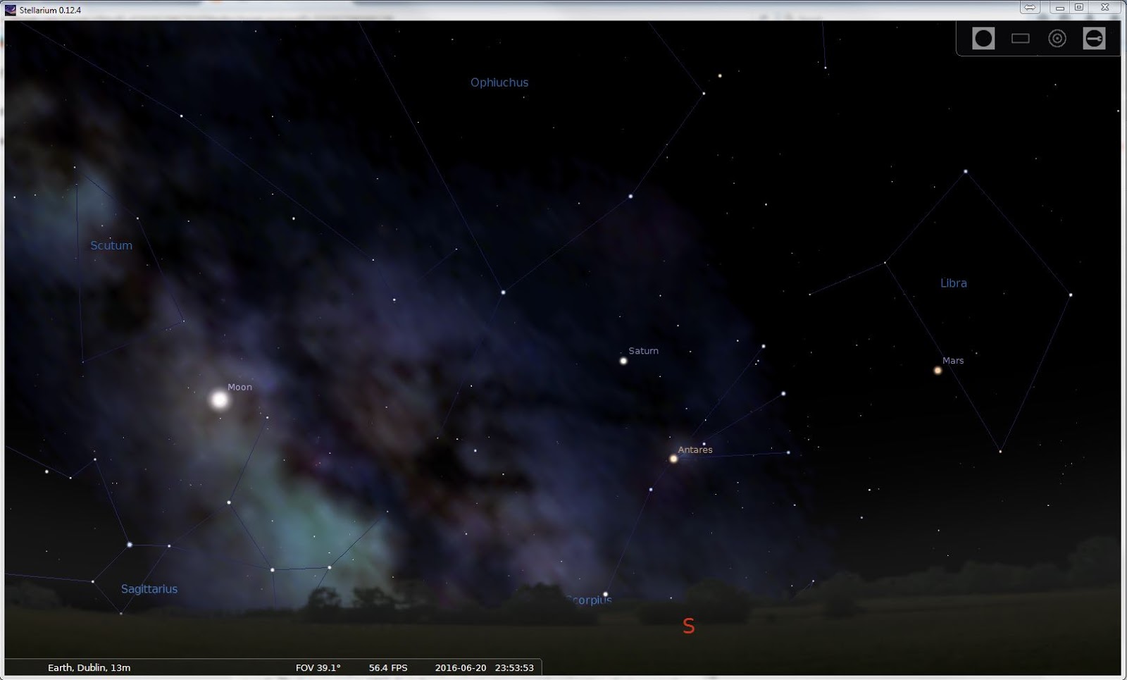 The moon will be accompanied in that region of the sky by the planet Mars, currently quite bright, and also the planet Saturn and the bright star of Scorpius, Antares.